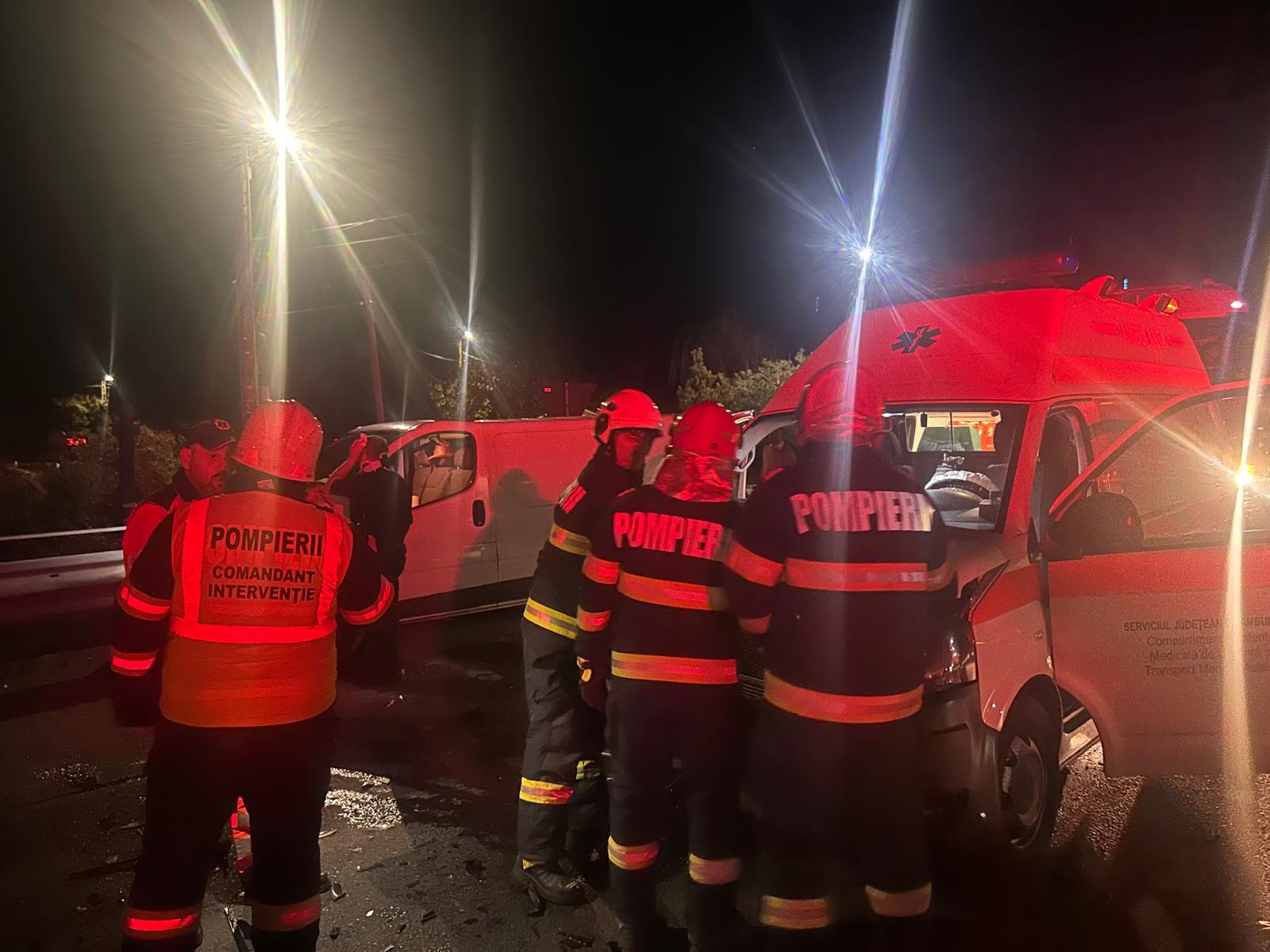 Din informațiile primite prin apel la 112, în coliziune au fost implicate o autospecială medicală de urgență și un autoturism. În urma impactului, o persoană a fost încarcerată în mașină.