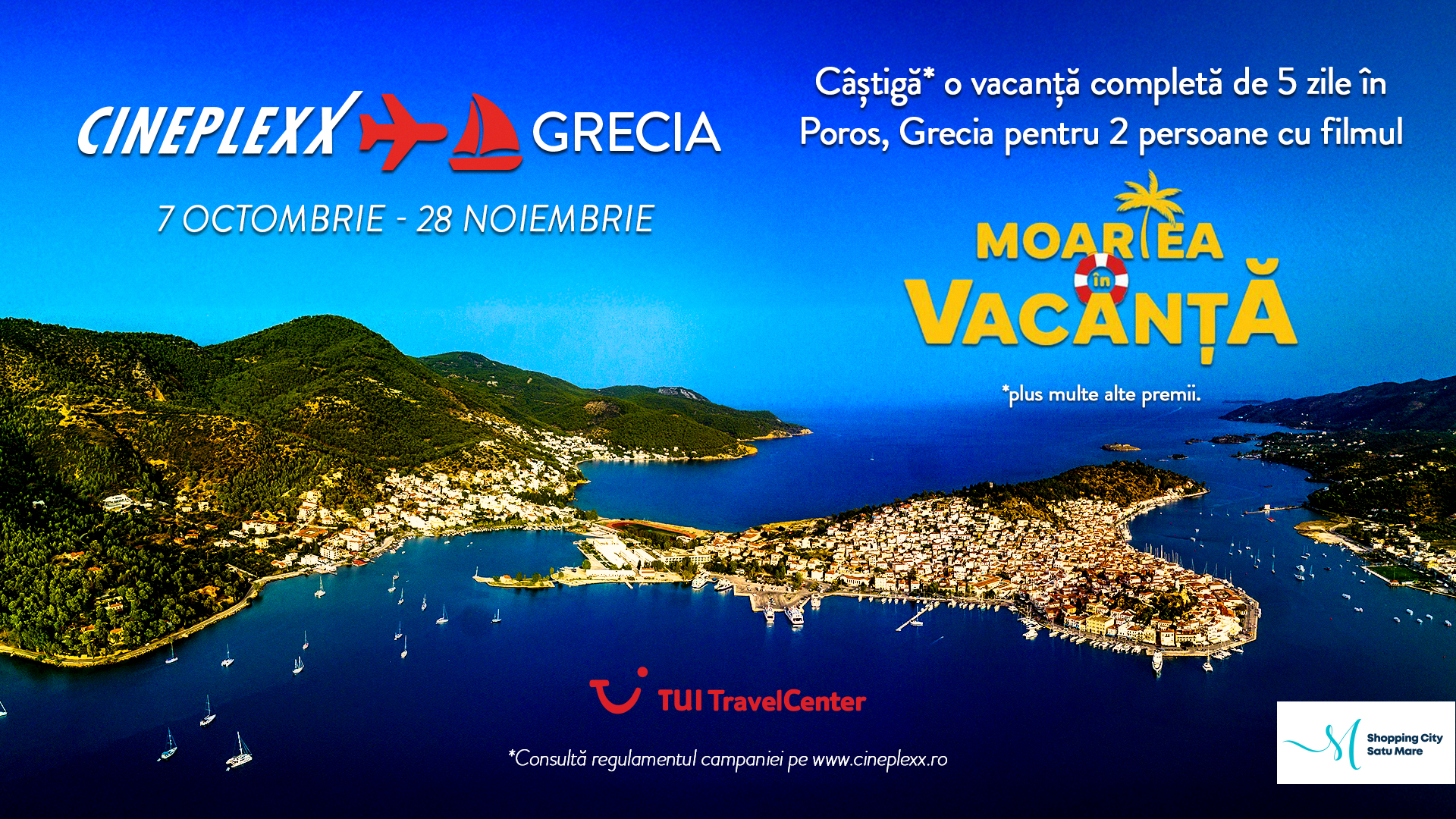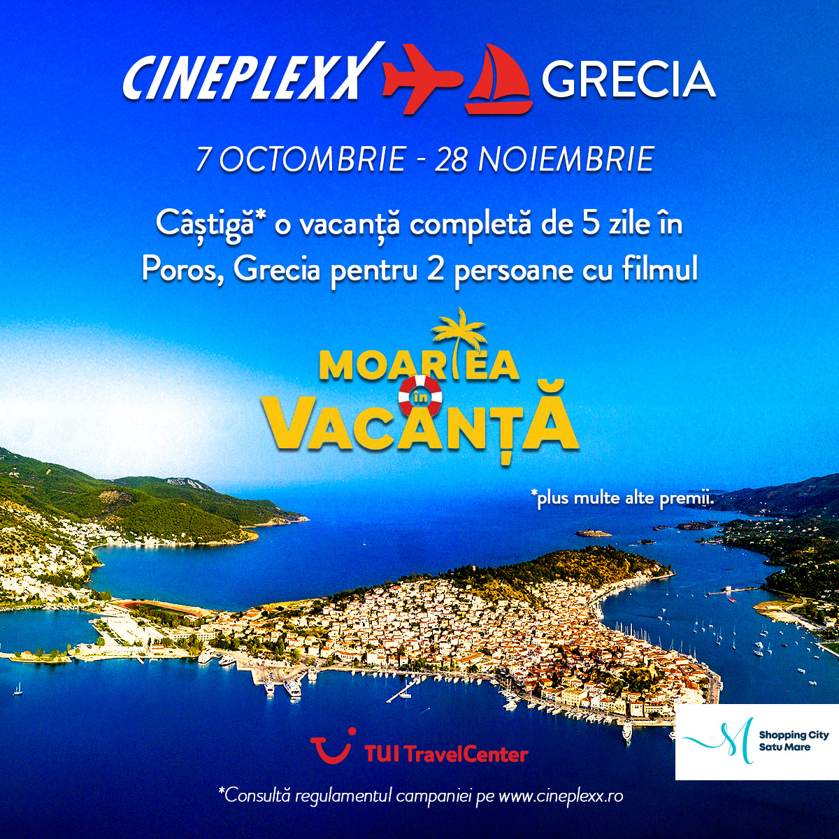 Gândește-te la asta: te așezi confortabil în scaunul de cinema, filmul începe, iar tu te gândești ce bine ar prinde o vacanță în Grecia, visezi la soarele mediteraneean, plajele însorite și frumusețea liniștită a insulei Poros. Exact asta ar putea fi următoarea ta destinație! Cineplexx România te provoacă să râzi, să te relaxezi și poate chiar să-ți faci bagajele, pentru că fiecare bilet achiziționat la Moartea în Vacanță îți aduce o șansă de a câștiga o vacanță de 5 zile de două persoane în Poros, Grecia.