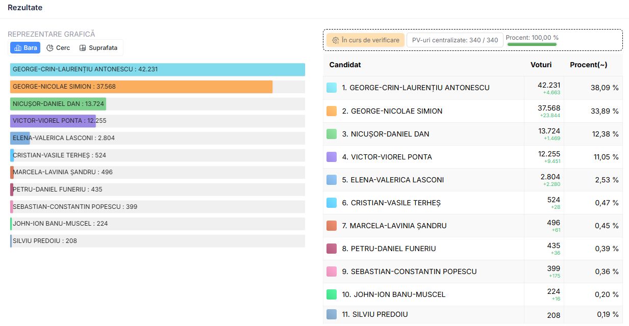 De data aceasta, candidatul AUR George Simion a obținut peste 37.500 de voturi, adică mai mult decât numărul total al voturilor obținute de el împreună cu Călin Georgescu data trecută.