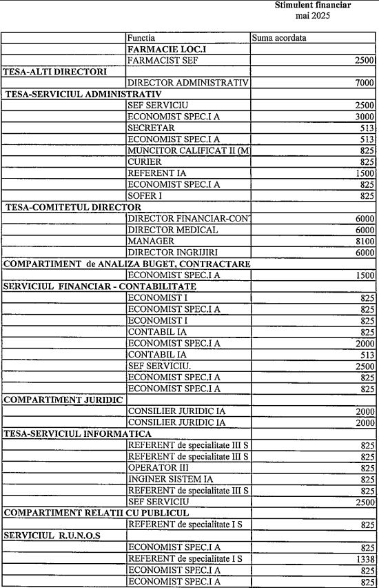 După cum se poate constata din lista publicată mai jos, personalul auxiliar primește sume relativ modeste, însă cei din conducerea spitalului și-au băgat niște prime babane, cu sume cuprinse între 6.000 și 8.100 lei (ca să iasă bine matematic ;)) Ei primesc aceste sume în fiecare lună, pe lângă salariile care nu sunt modeste nici ele.