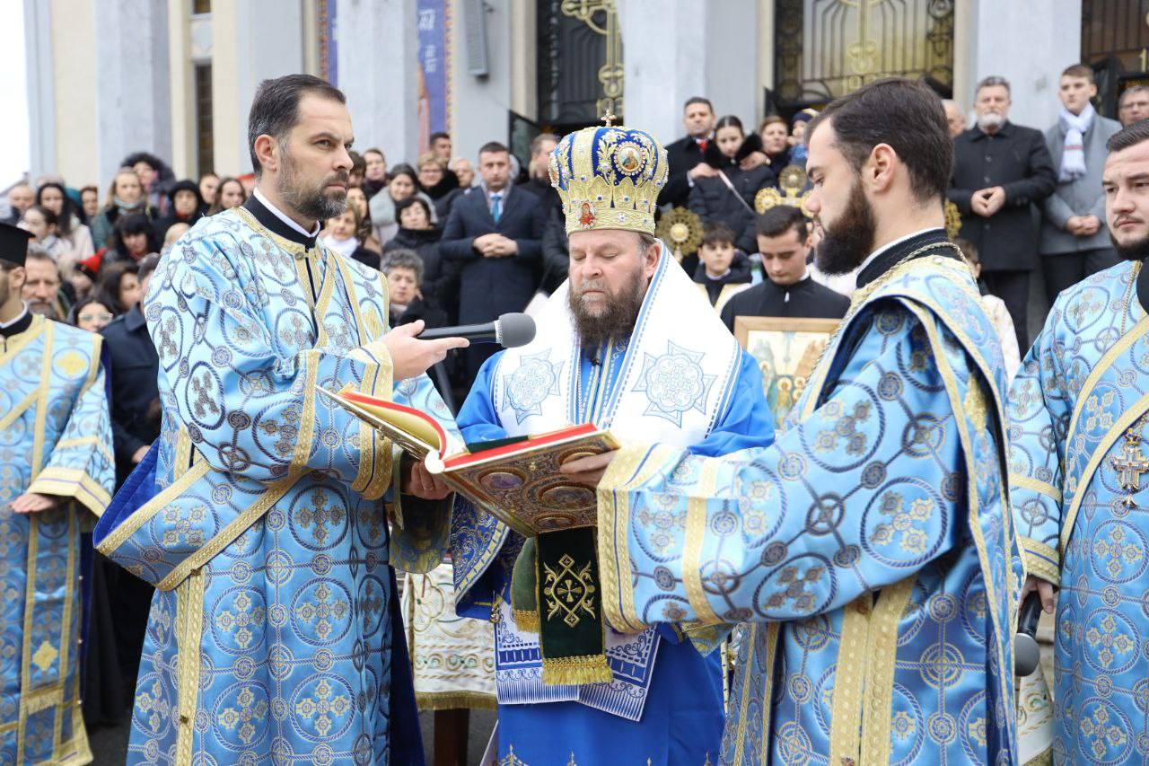 Cu acest prilej, Preasfinția Sa a săvârșit Sfânta și Dumnezeiasca Liturghie a Sfântului Vasile cel Mare și a oficiat Slujba Sfințirii celei Mari a Apei (Aghiasma Mare).