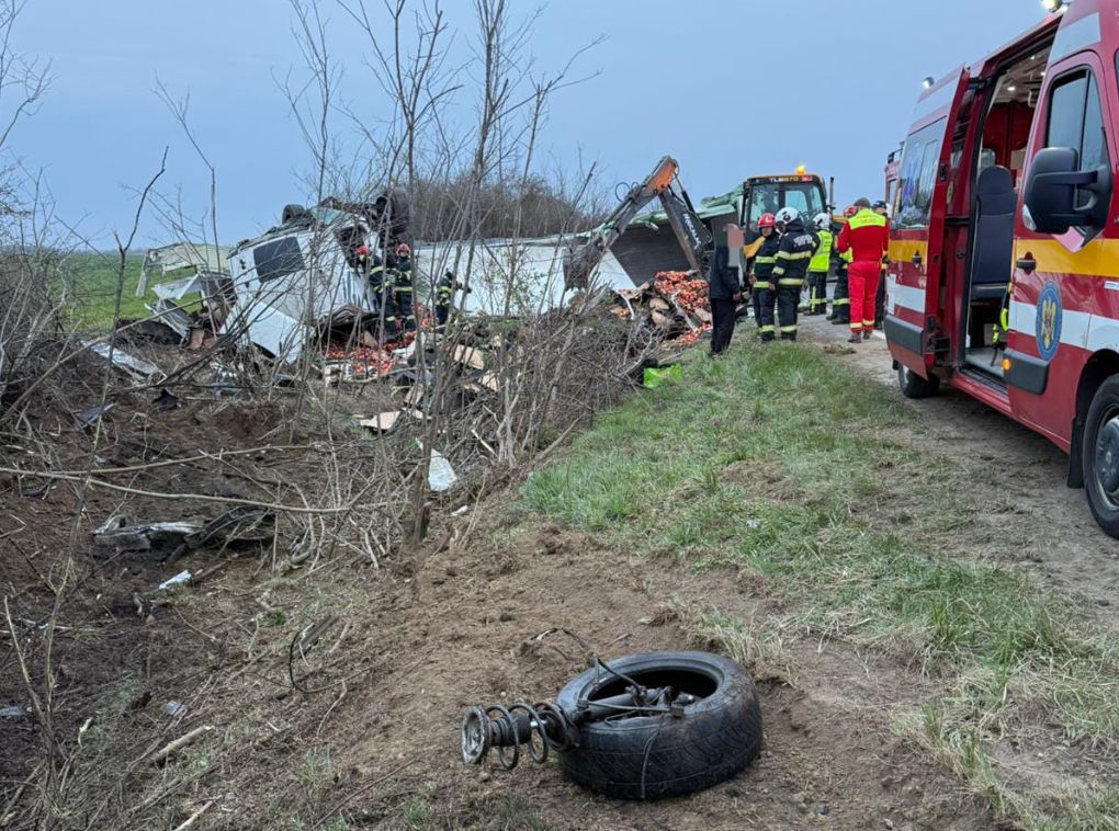 Autocamionul transporta mere, iar în urma accidentului încărcătura s-a împrăștiat pe carosabil, fiind necesară intervenția unui utilaj pentru degajarea drumului. Traficul rutier în zonă a fost complet blocat pe durata intervenției.