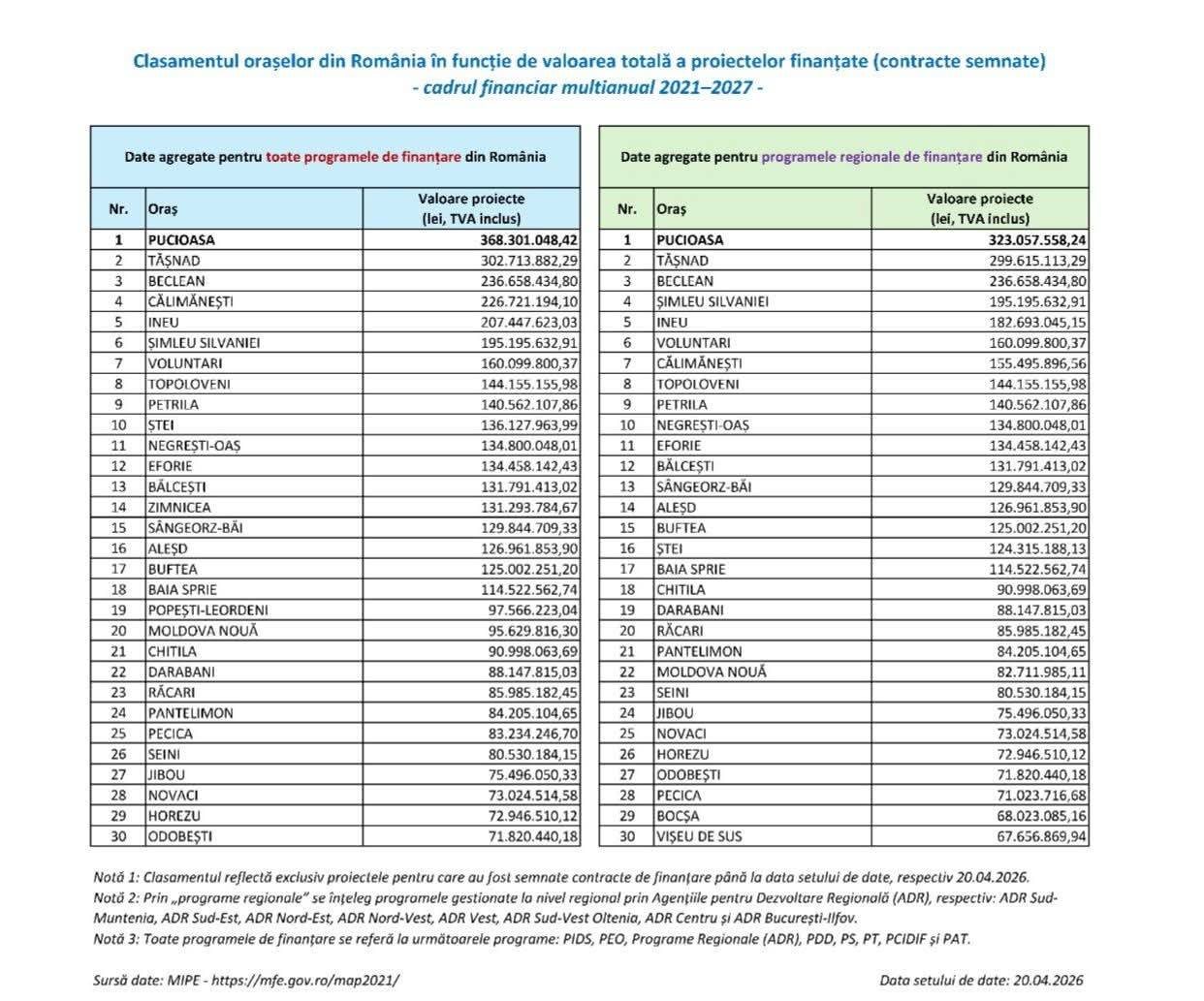 Este vorba despre contracte semnate și aflate deja în derulare (unele finalizate) în ultimii șase ani, în valoare de peste 300 milioane de lei. În clasamentul național este devansat doar de stațiunea turistică Pucioasa din județul Dâmbovița, iar pe locul următor se clasează  o altă  stațiune balneară, Beclean din județul Bistrița-Năsăud. În Top 10 al sumelor atrase în cadrul programelor regionale a mai intrat și Negrești-Oaș, cu aproape 135 milioane de lei.