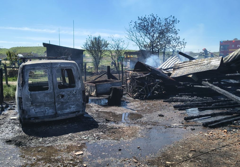 Incendiul a fost localizat în timp operativ, însă flăcările au afectat o suprafață de aproximativ 250 mp. În urma evenimentului au ars o anexă gospodărească, circa 5 m³ de lemn de foc, un autoturism, o semiremorcă, precum și un utilaj agricol.